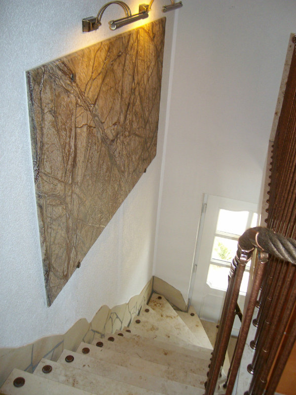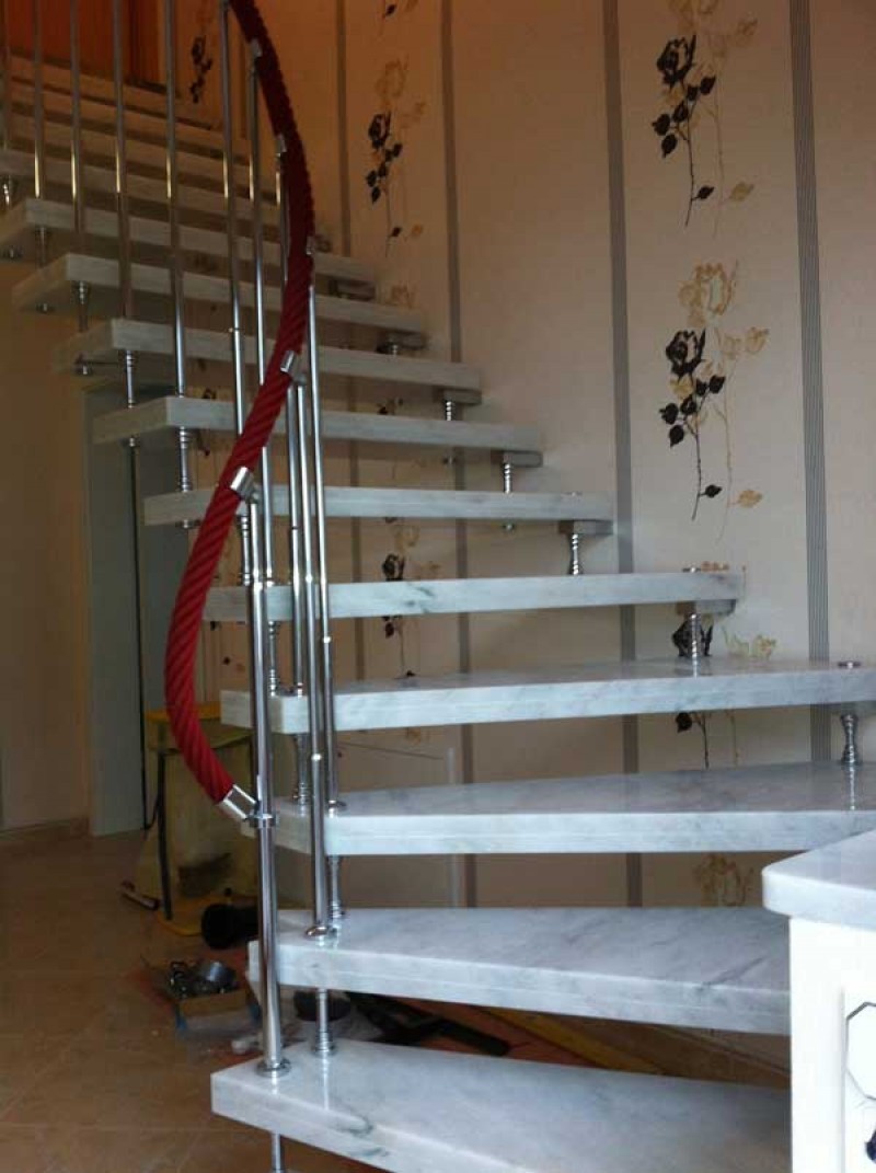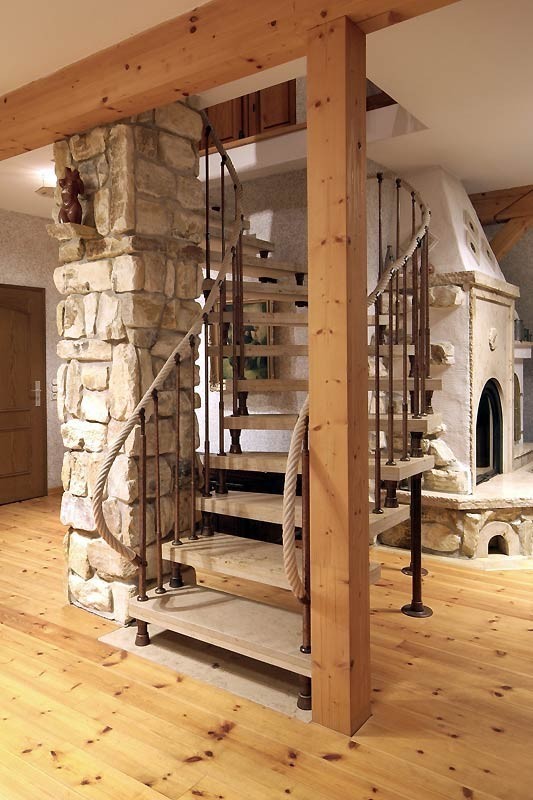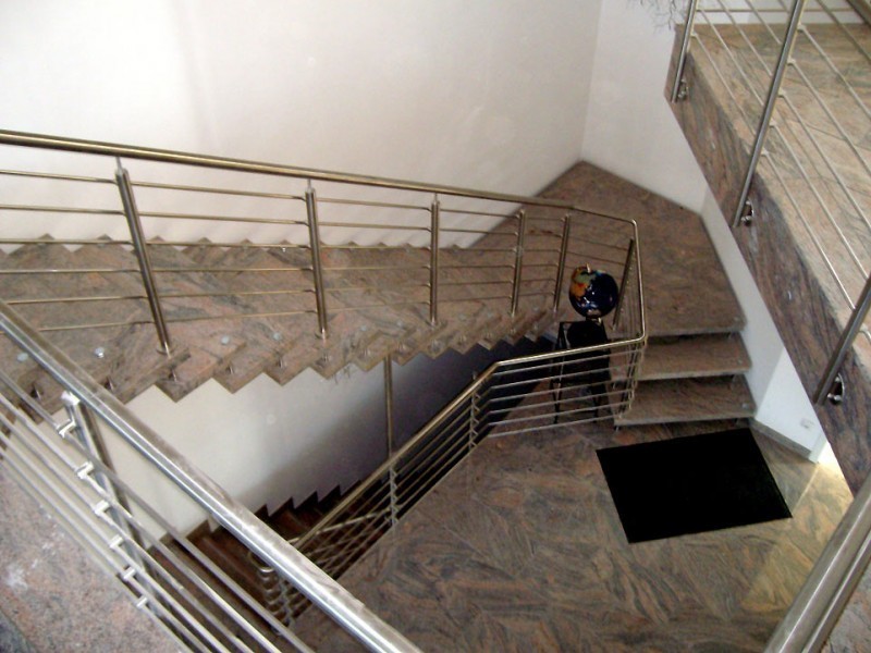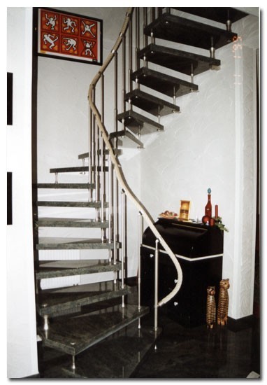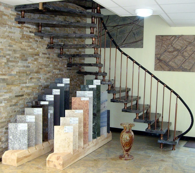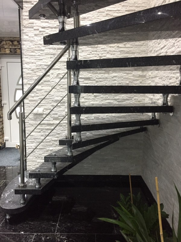 Freitragende Bolzentreppen aus Naturstein zeichnen sich neben einer edlen Optik durch hervorragende Schallabsorption und Statik aus. Sie schweben förmlich frei im Raum und lassen Räume größer wirken, da sie viel Licht durchlassen und der Raum hinter der Treppe frei genutzt werden kann.