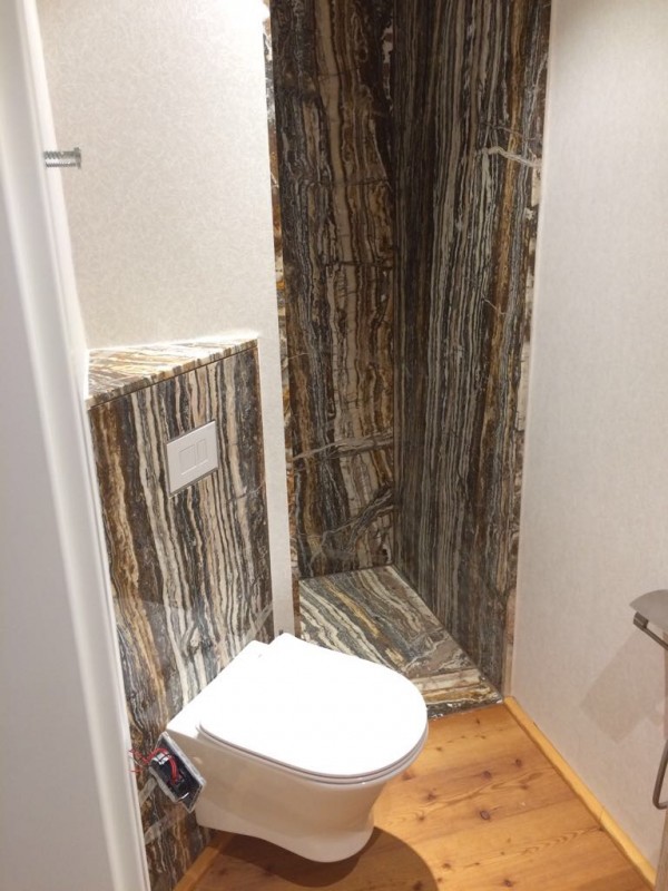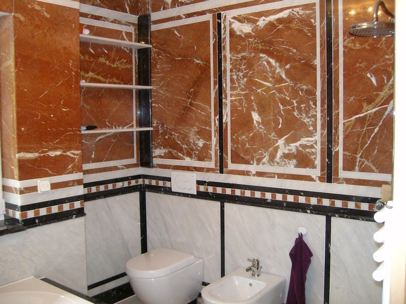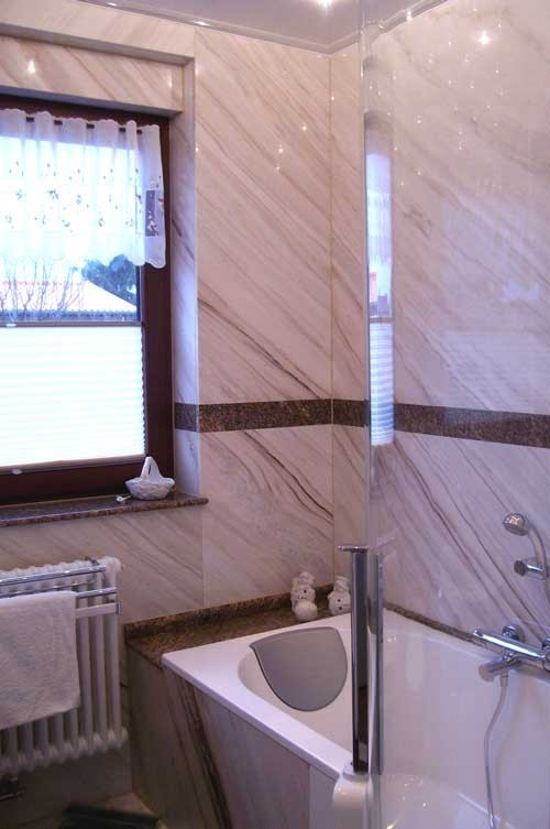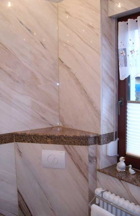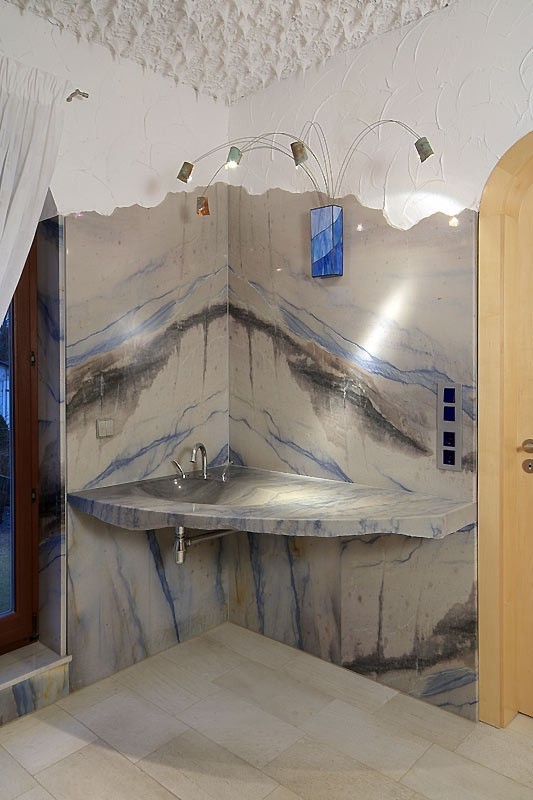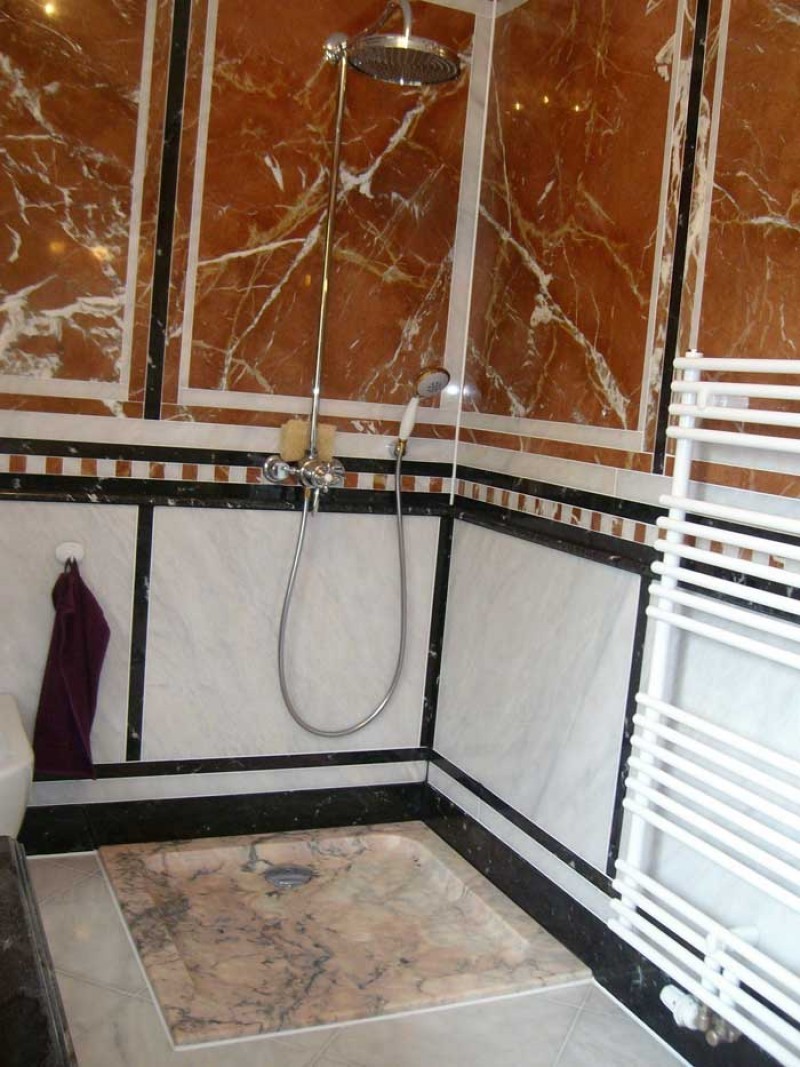 Die geringe mechanische Beanspruchung, erlaubt es hier auch edlen Marmor einzubringen.