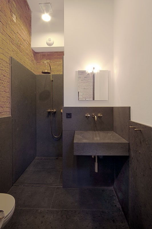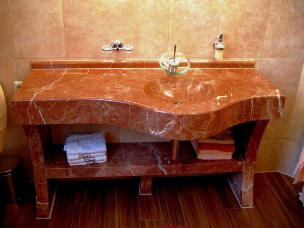 Waschtisch und Boden aus Bianco Sardo